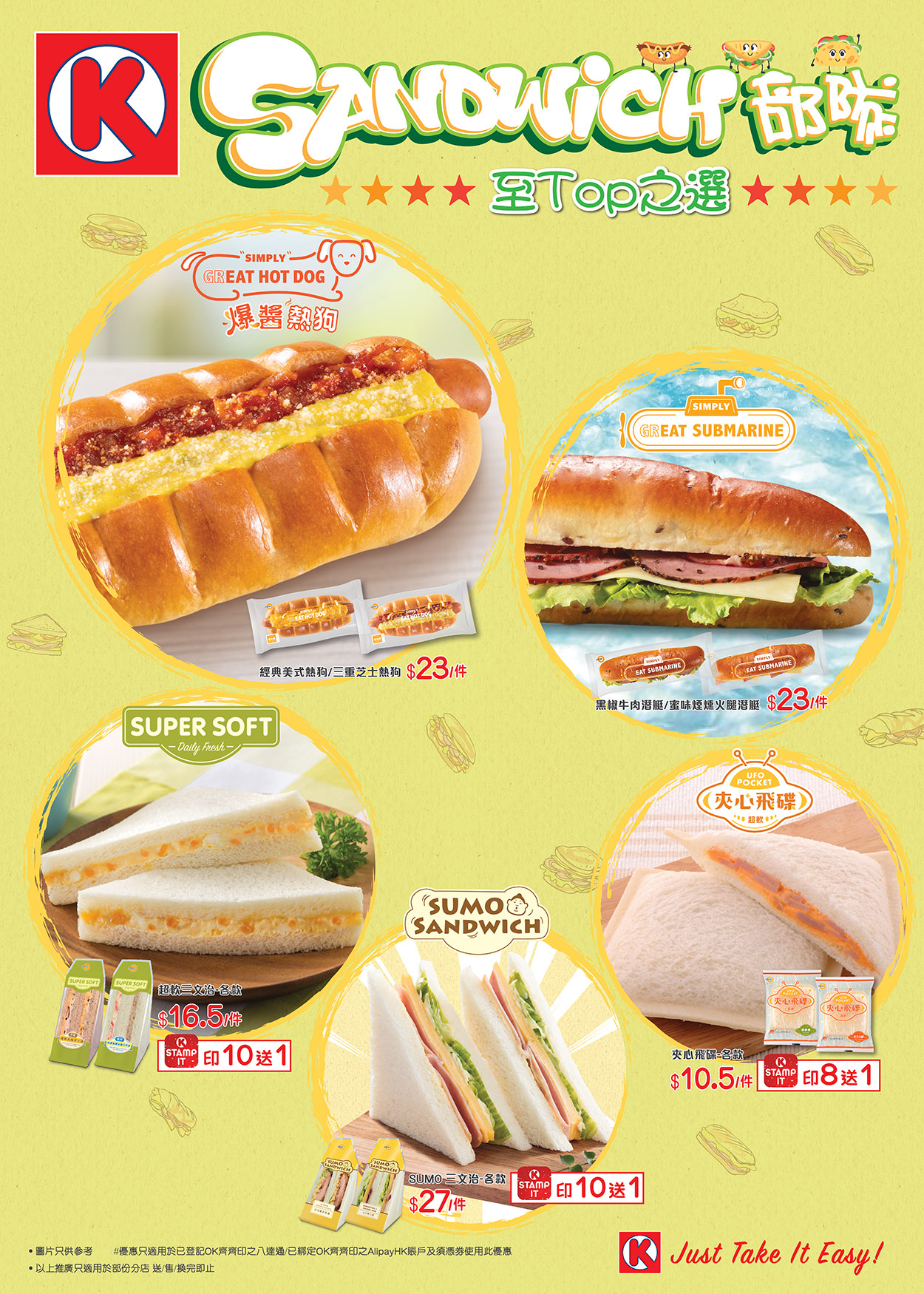 Source: upload.cc 【ok stamp it 會員尊享】 wow~【super soft 超軟三文治】有一連5日優惠!超軟熟嘅麵包配多款口味,足料內餡啖啖滿足,人人試過都like,今日早餐揀邊款好呢? ok stamp it會員於3月9日早上7時至3月13日期間,可以 $10優惠價購買任何super soft 超軟三文治一件 (只限單件購買)。